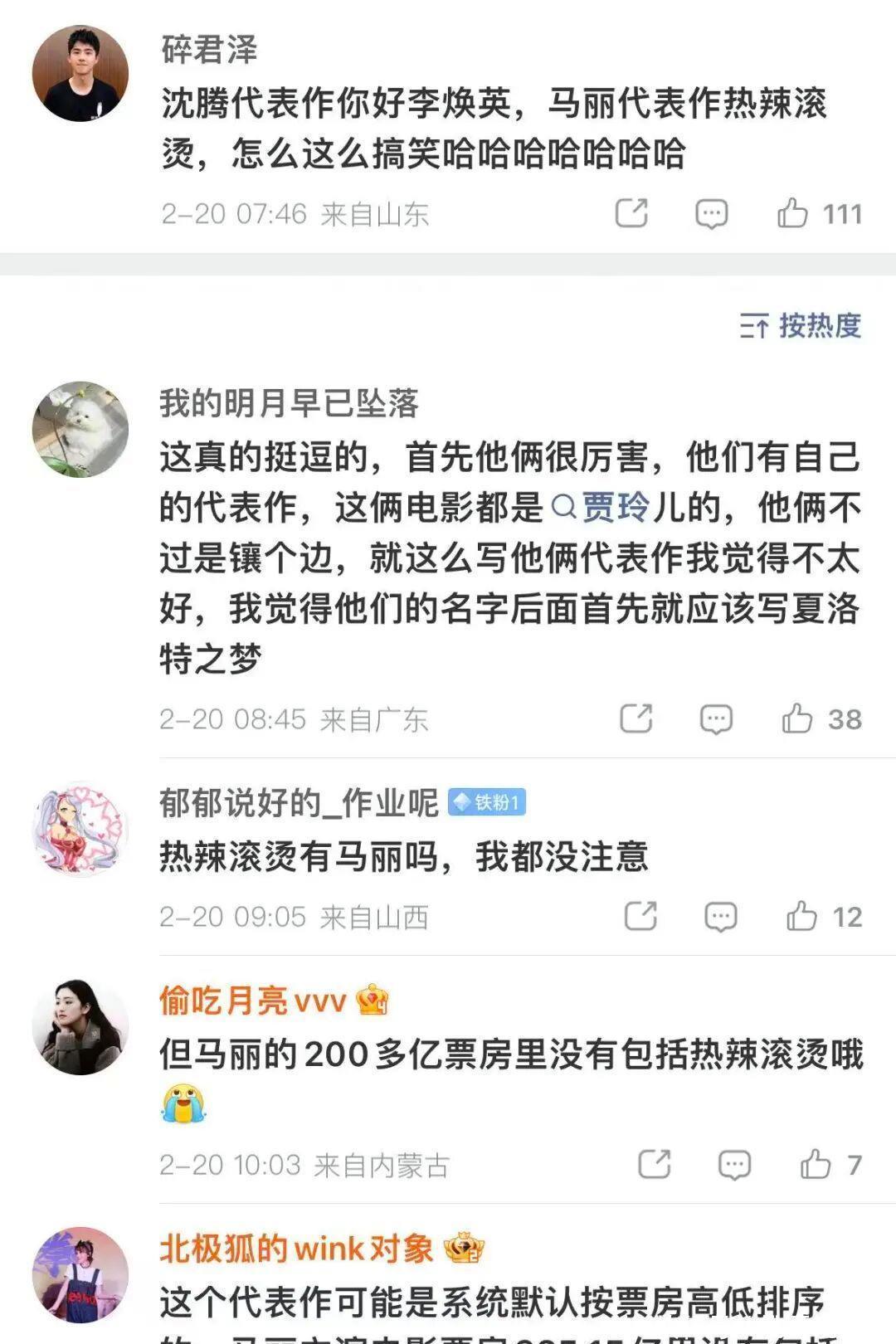 网友乐了:“沈腾代表作《你好,李焕英》,马丽代表作《热辣滚烫》,这俩是贾玲的左右护法吗?”评论区炸出一片嘲讽,原来不只我觉得她演技烫嘴。